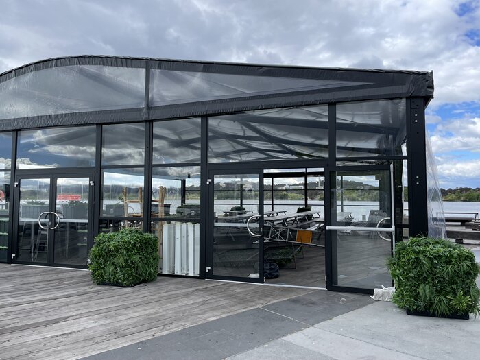 Professional glass facades for a permanent-building aesthetic