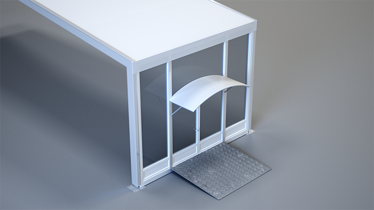 Limited mobility access entry and exit aid ramps made of steel and aluminium.