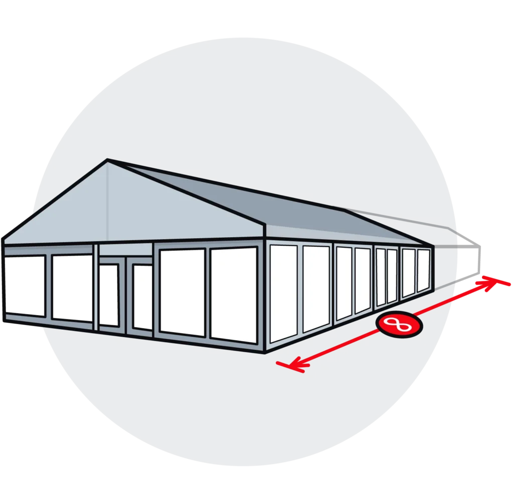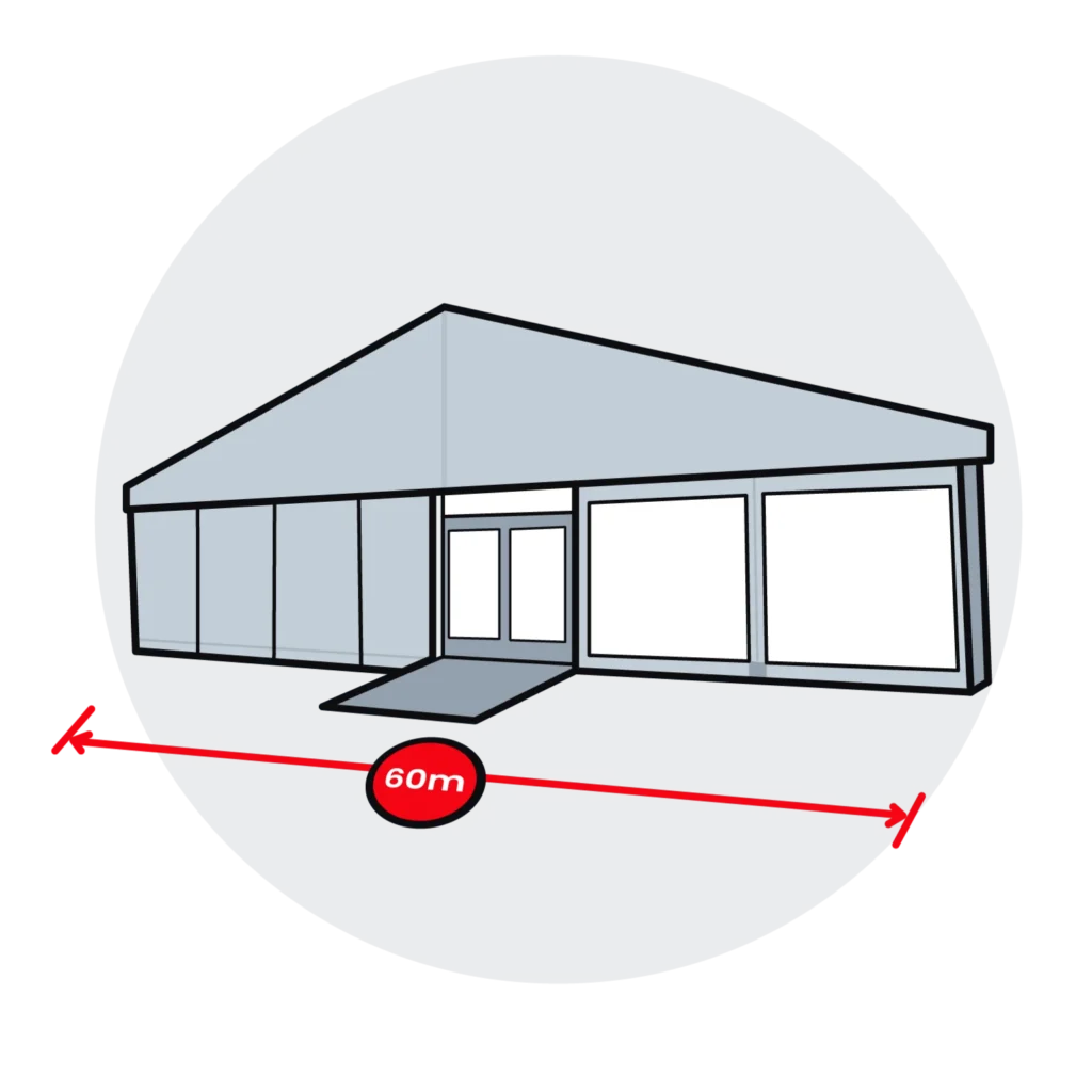 Our marquee tents go from 10m wide up to 60m wide but if you need a smaller event venue, we recommend our party tents.