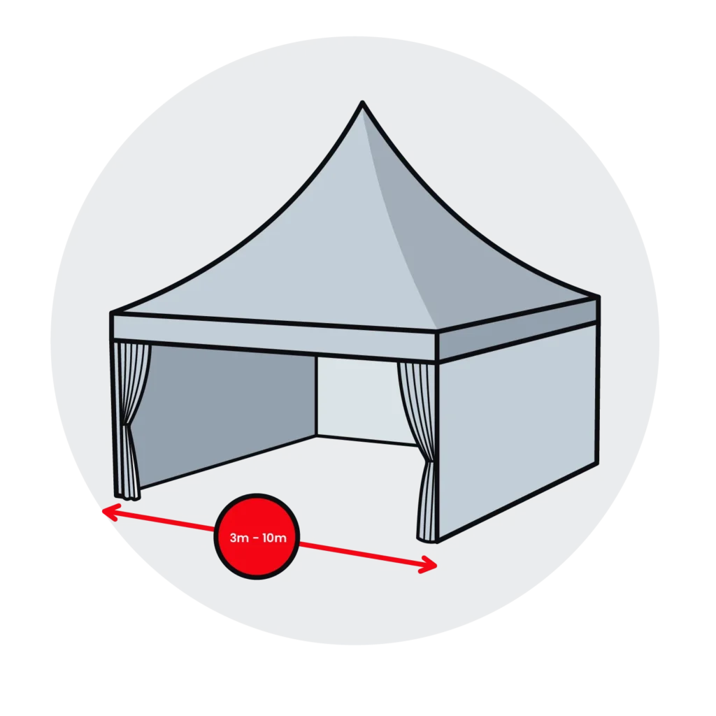 Our pagoda tents are available from 3 x 3m to 10 x 10m, but we can provide any of our event tents tailored to your specific requirements. We also provide bespoke pagodas and you can rent or buy our pagoda tents. However, we recommend renting if you only have a short-term need for our pagoda event tents.