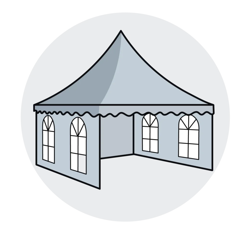 Our pagoda tents mimic impressive design to stand out at weddings, company celebrations, anniversaries and much more. Compared to other types of tents, the pagoda roof provides extra height and spacious interiors.