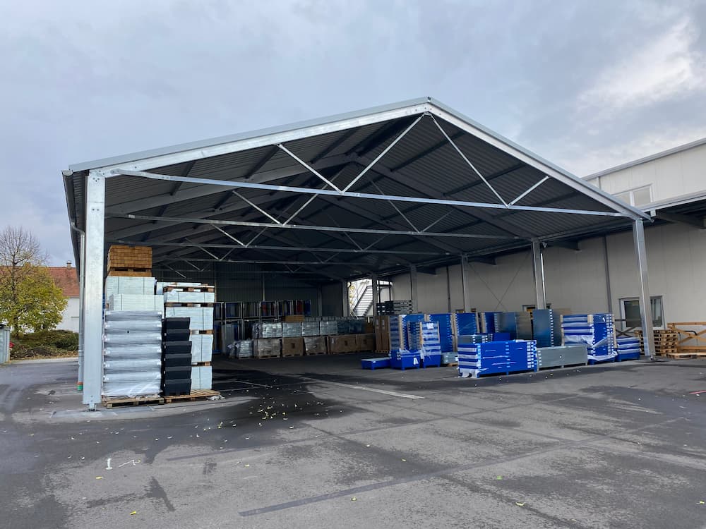 Our lightweight structures are mostly made of aluminium. This is a sustainable and recyclable material, which is also inexpensive. It provides structural resilience that is comparable to other construction materials. It is also possible to erect an aluminium industrial building without foundations.