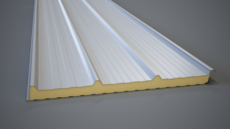 Insulated sandwich panels are ideal for insulated buildings. Two outer corrugated sheet steel panels sandwich different thicknesses of polyurethane foam or mineral wool that provide different levels of insulation. The outer steel sheets can be supplied in a range of different colours.