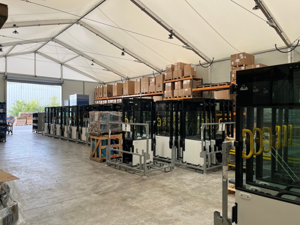 Aluminium framed temporary buildings from HR-Structures can be made with a span between 5m and 30m in 5m increments. The building wall height can be between 4.3m and 8.3m in 1m increments. They can be extended in 5m increments to whatever length you want or have space for. Special dimensions and multi-aisle solutions can be manufactured individually upon request.
