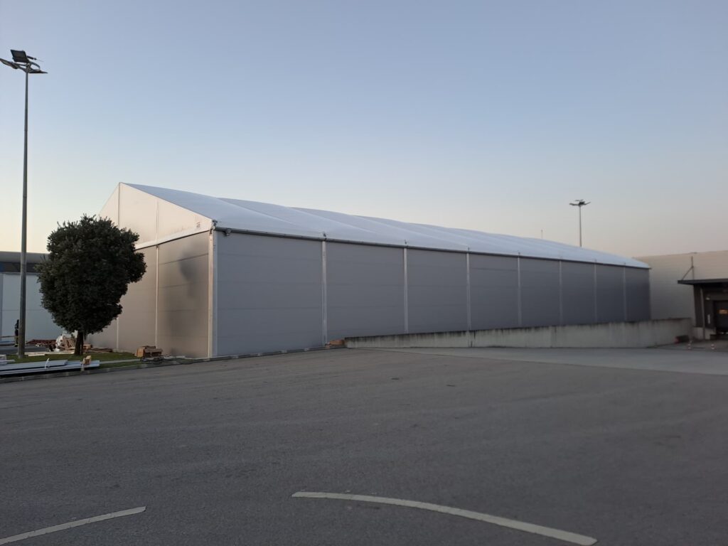 Our lightweight structures are mostly made of aluminium. This is a sustainable and recyclable material, which is also inexpensive. It provides structural resilience that is comparable to other construction materials. It is also possible to erect an aluminium industrial building without foundations.