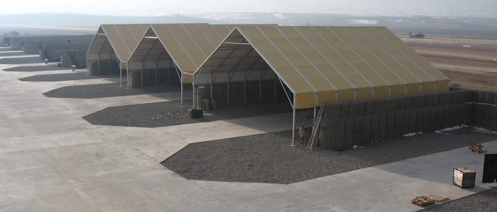 Our modular hangars are perfect for temporary or permanent use where wide spans, quick assembly, and high load-bearing structures are required. Whether as a maintenance tent, vehicle shelter, or technical operations building, our hangars are quick to deploy and erect in a wide range of situations.