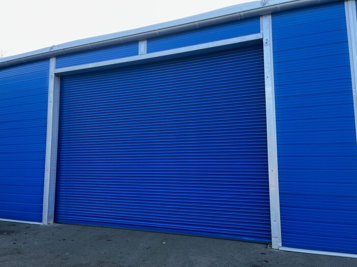 The building that houses these incredibly fast, accurate and expensive machines is 15m wide and 25m long with 5.3m high walls to the eaves. It is fully insulated with a white thermo roof system and 40mm sandwich panel walls in a bold blue colour (RAL 5010). Two personnel doors and a bespoke roller shutter door that’s 6m wide and 4.5m high are also RAL 5010 blue. With external guttering and down pipes, the warehouse provides the perfect temporary storage solution for its incredibly valuable contents.