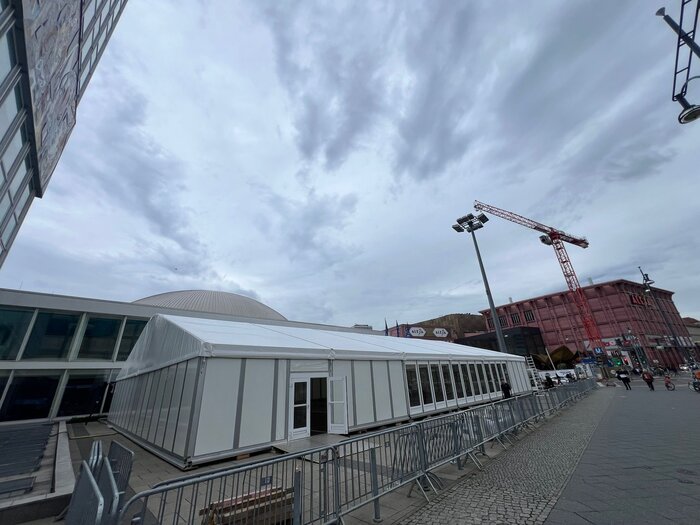For the floor, a stable substructure of rail beams with matching carpet pad profiles and connectors ensures a secure base. The main structure of the marquee is made from anodized aluminium profiles with steel connections at the ridge for maximum stability.