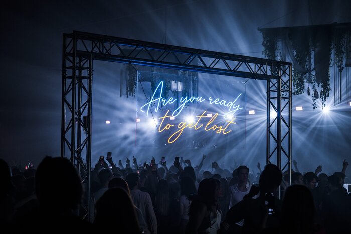 This polygon tent event building from HR-Structures was the venue at multiple locations for a Swedish electronic music festival. The matt anthracite black tarpaulin tent was 50m wide and 65m long to give an enormous 3,250m² party space for thousands of revellers and the many world-famous DJs that entertained them. With additional side supports, the maximum width of a Polygon tent from HR-Structures is 60m. These event buildings are designed for quick erection and demounting and can be transported on trailers with load capacity of 2 tonnes per axle.