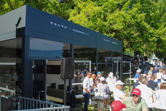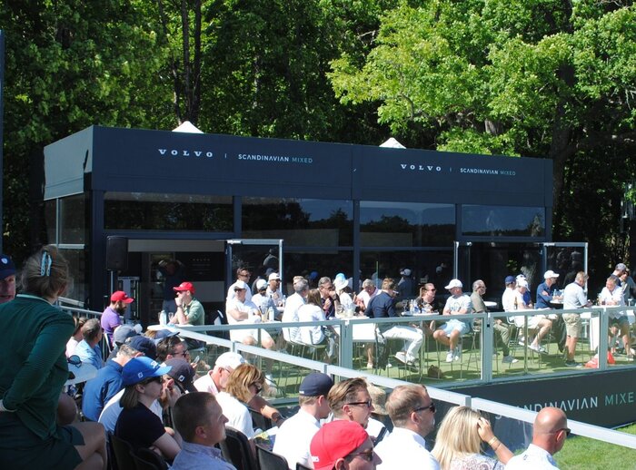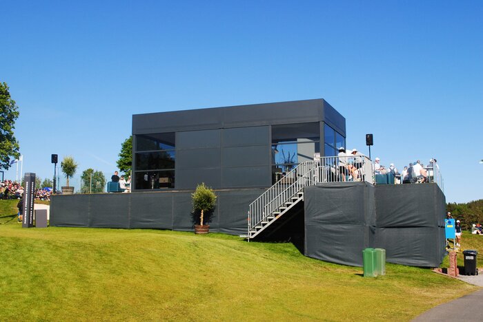 Several Skyline pagodas with an elegant roof frame have been provided for a renowned Swedish golf tournament. A prominent feature of this project is the roof surround, which encloses the entire pagoda roof to provide branding space.